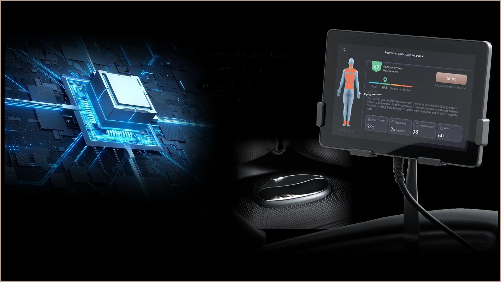 С помощью планшета вы легко сможете управлять массажем - отследить уровень здоровья, управлять интенсивностью аэро и роликового массажа, установить массаж отдельной области или точки: шеи, плеч, поясницы, ног, стоп и т. д.